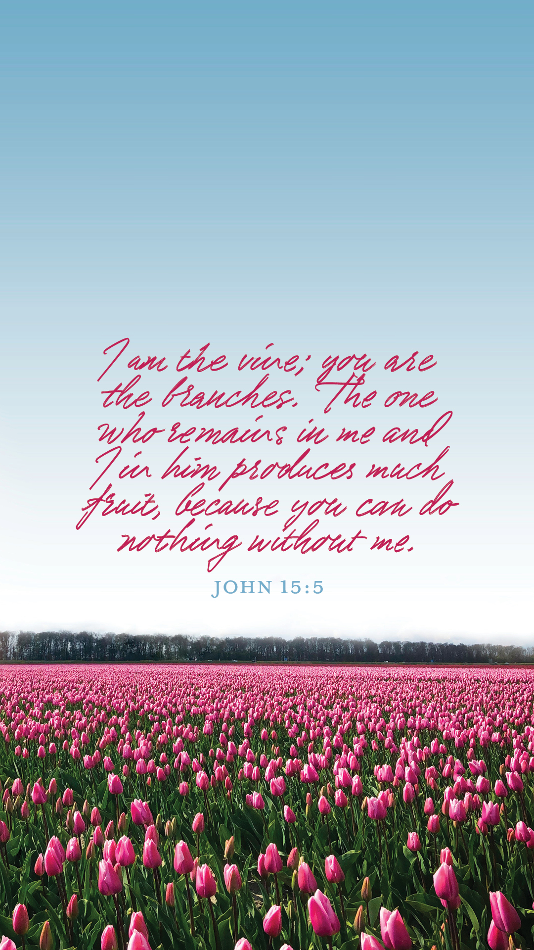 John 15:5 Phone Wallpaper Download one of these wallpapers to help you memorize John 15:5! Download Wallpaper #1 Download Wallpaper #2 Download Wallpaper #3 Published March 17, 2026